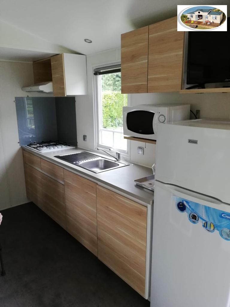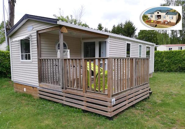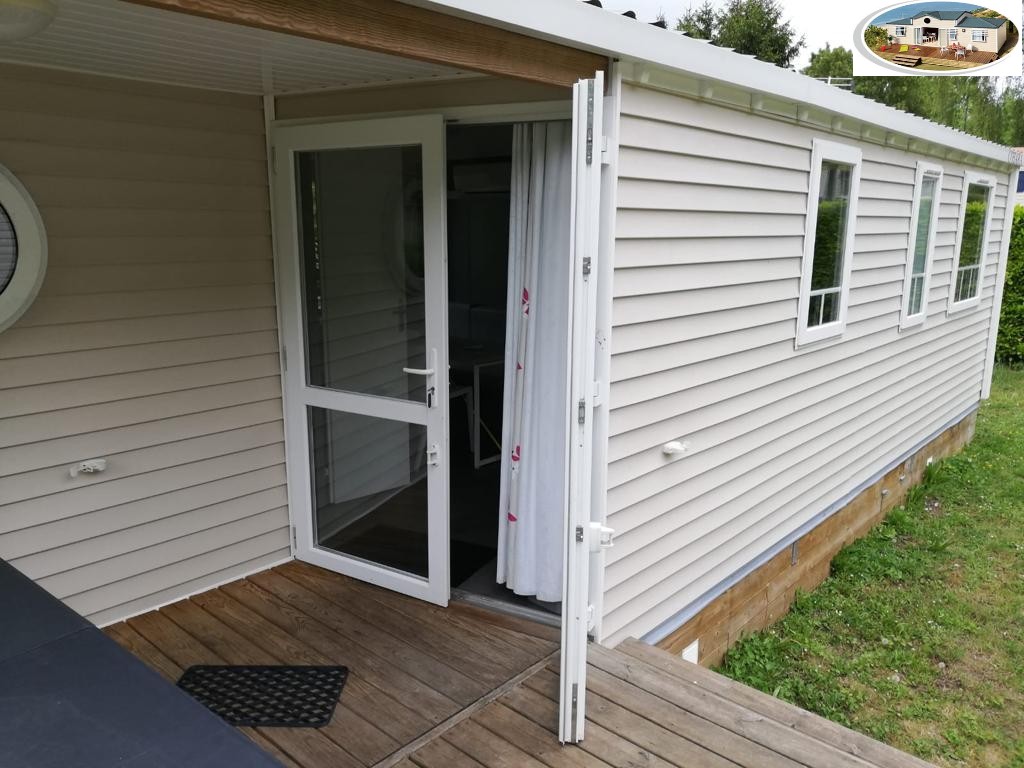 Mobil-home d’occasion avec terrasse intégrée tres bon etat style contemporain.
