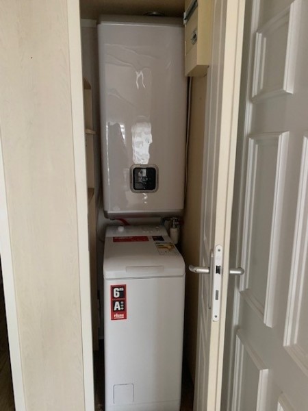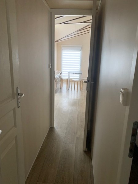 Cuisine équipée : plaques à gaz 4 feux, réfrigérateur